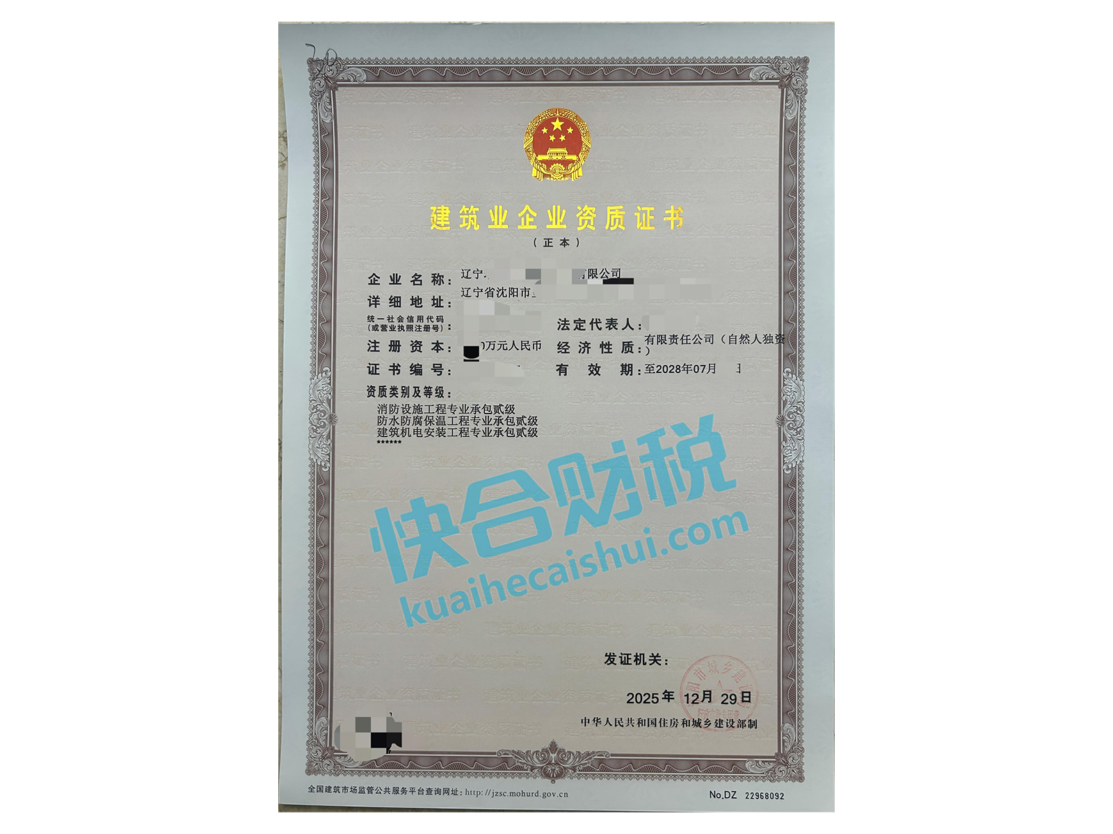 建筑业企业资质证书